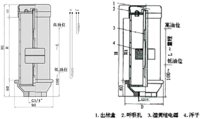 1)、油位信號器底面到最低油位高度至少100mm,出廠時按此定低油位信號;