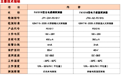 FA1018型光電感煙探測(cè)器、FA1016型電子感溫探測(cè)器