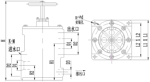 NZL型手動(dòng)濾水器的清污、排污過程不影響正常積水。正常過濾狀態(tài)時(shí),排污閥關(guān)閉。當(dāng)需要清污、排污時(shí),排污閥打開,濾水器開啟,進(jìn)出水管口與被沖洗的濾網(wǎng)單元相連通,附在濾網(wǎng)上的污物借助濾水器內(nèi)部的部分過濾后的清潔水反沖,經(jīng)排污閥流出,排入集水井